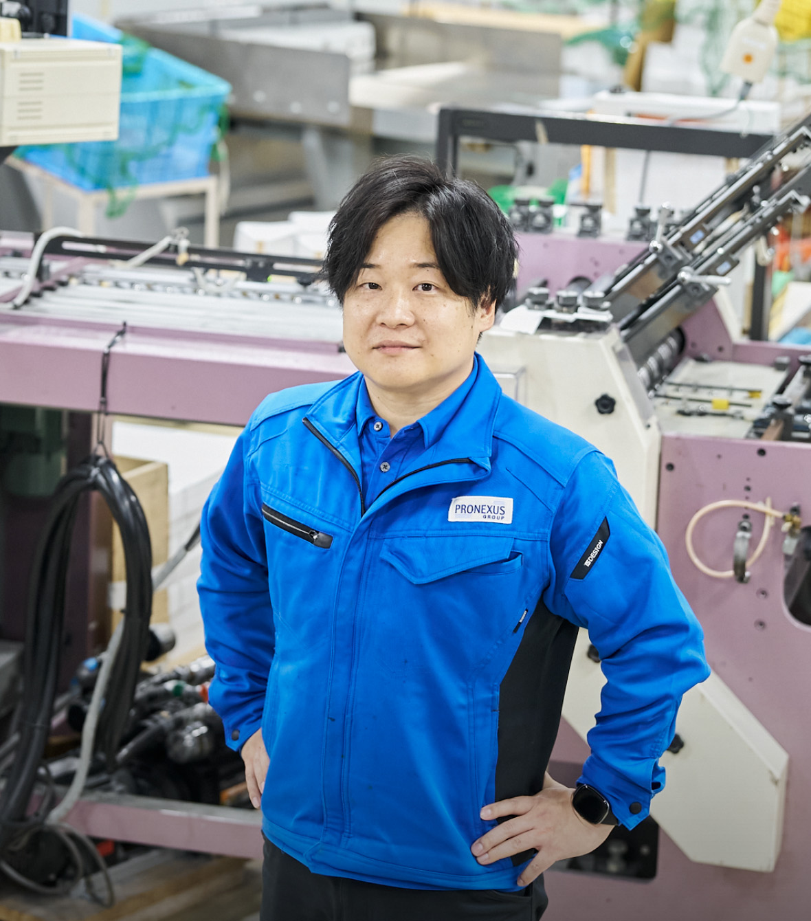 プロネクサスは自社で大きな工場を構え、お客さまのディスクロージャー(情報開示)のニーズに応えるさまざまな印刷物を生産しています。上場会社の株主総会招集通知や、1年間の事業活動をまとめた年次報告書、あるいは投資信託の目論見書や販売用資料など、多種多様な印刷物を効率よくスピーディーに、かつ無駄なコストをかけずにつくっていくことが私たち製造部の役割です。私は入社以来、現場で印刷機を操って品質の良い印刷物を製作するオペレーターとして経験を重ね、チームリーダーに昇格した後は、担当する印刷物については利益管理にまで責任を持つようになりました。人件費や修繕費などをきちんと意識して、どのような体制で印刷すれば利益が最大化するのかを考え、チームを動かしていく。いわば経営者のような役割が求められ、キャリアアップするにつれて仕事のやりがいもますます大きくなっています。