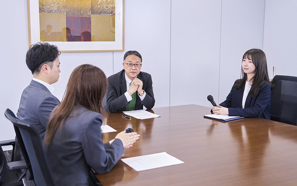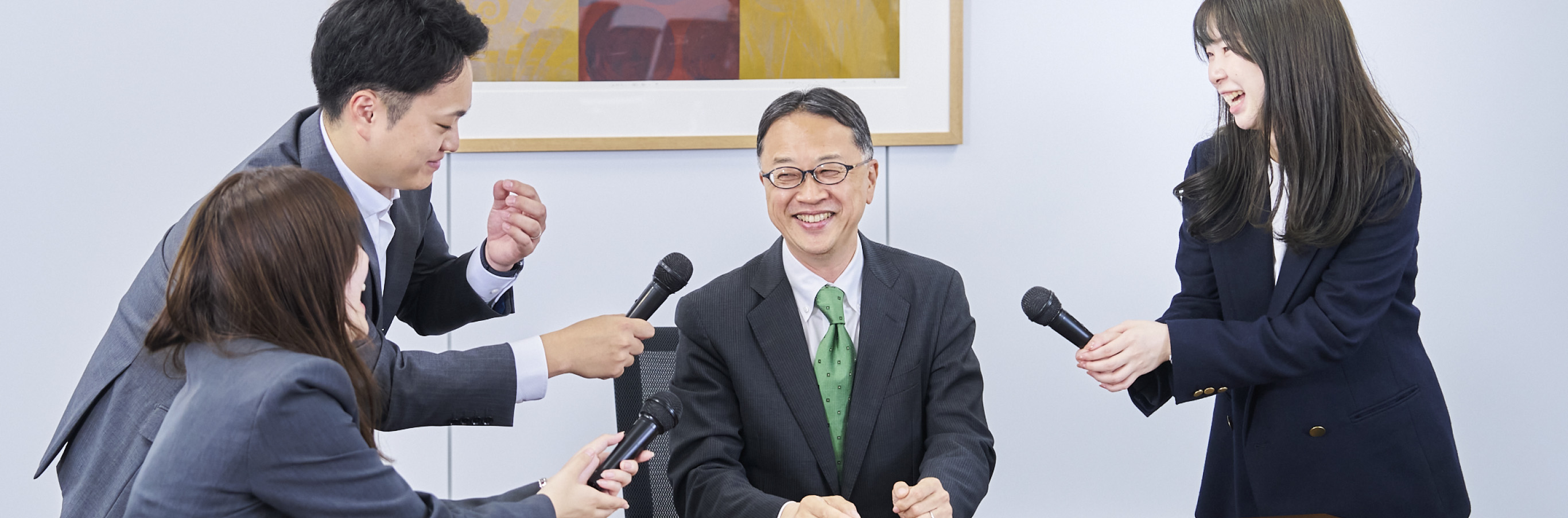 プロネクサスは新たなビジネス領域へのチャレンジを続けています。この大きなチャレンジを成功に導くため、優秀な人財採用を推進していく専属部門として2025年1月に人財開発部が発足しました。今回、プロネクサスが求める人物像や働く魅力について、この採用サイトにアクセスいただいた皆さんに詳しくお伝えしたいと、人財開発部の若手メンバー3名が上野社長への特別取材を決行しました!